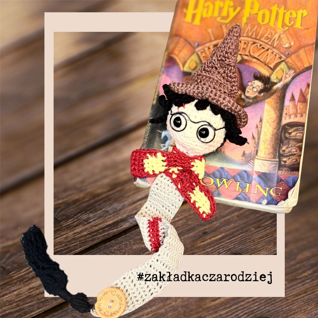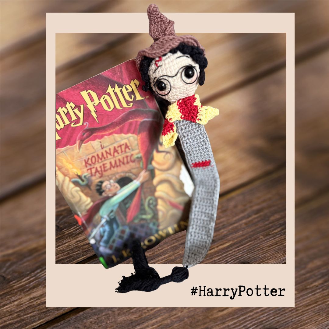 Ta wyjątkowa szydełkowa zakładka inspirowana Harrym Potterem to prawdziwa gratka dla fanów magicznego świata Hogwartu. Wykonałam ją ręcznie z miękkiej, bawełniano-akrylowej włóczki. Każdy detal – od charakterystycznych okularów po błyskawicę na czole – powstał z dbałością o najmniejsze szczegóły.